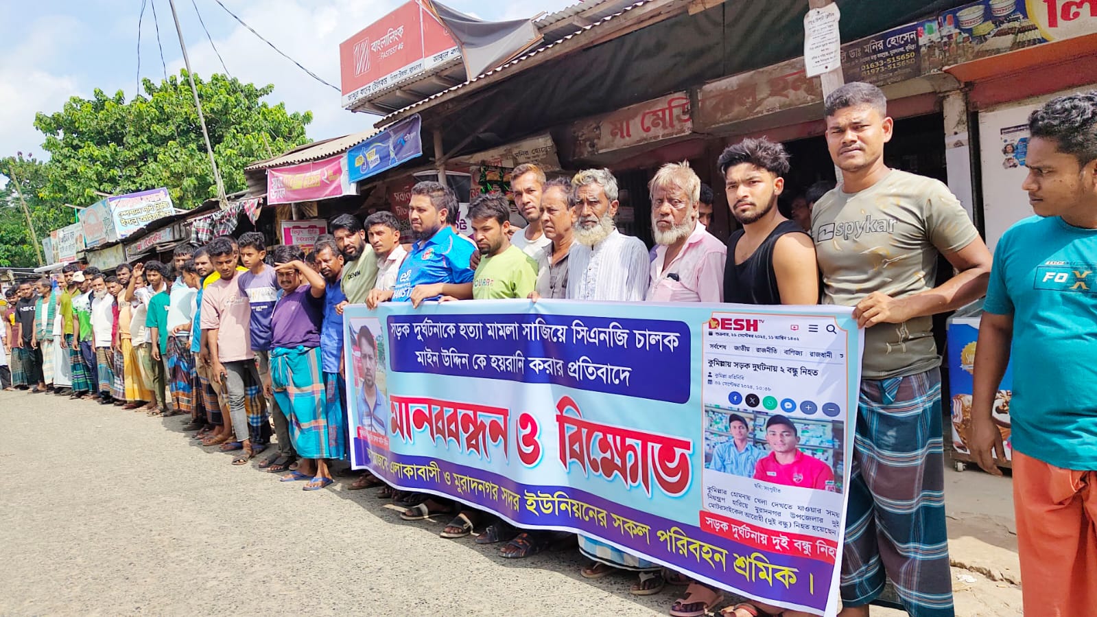 মুরাদনগরে অটোরিকশা চালক হত্যার খুনিদের ফাঁসী দাবিতে মানববন্ধন ও বিক্ষোভ